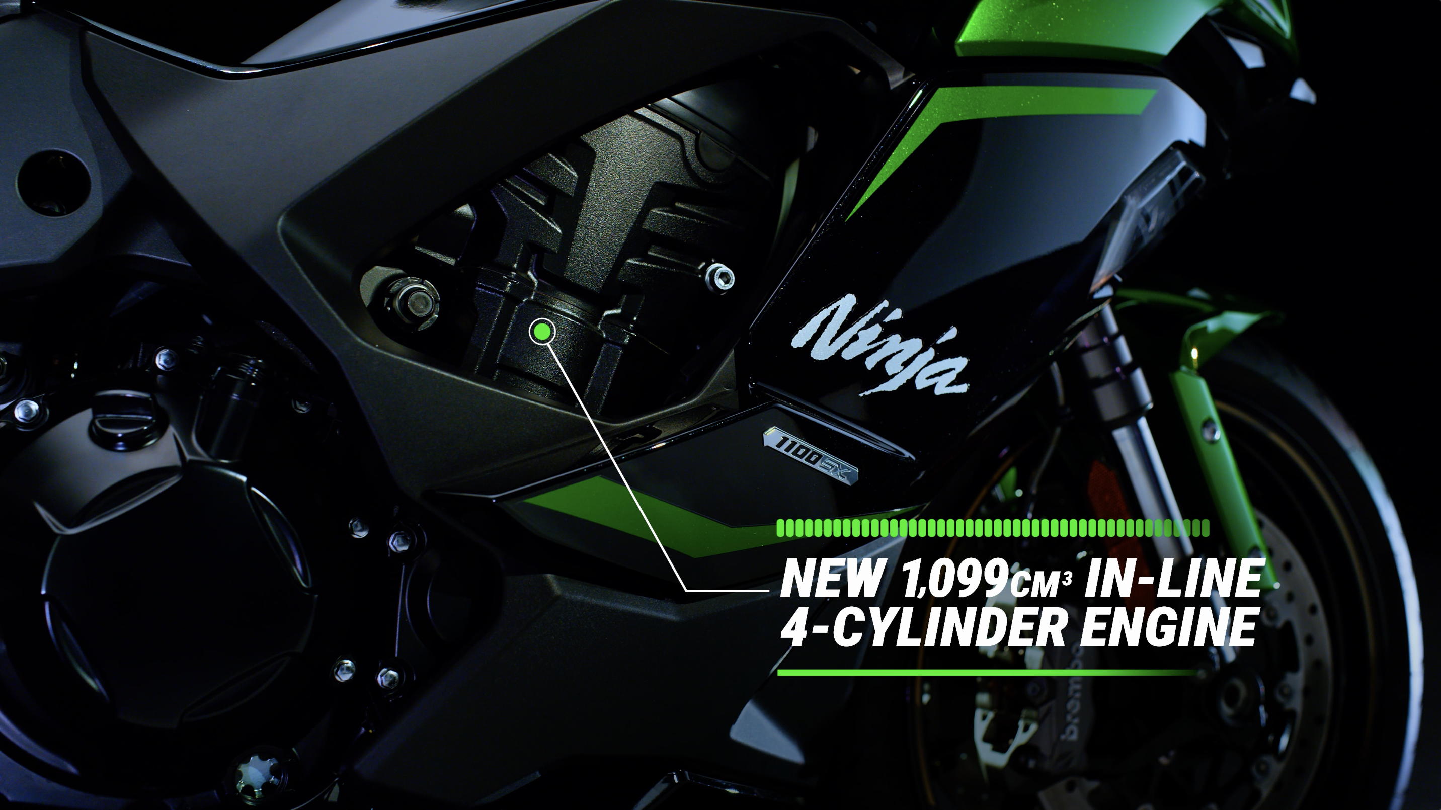The Ninja 1100SX takes sport riding enjoyment to the next level, with a larger-displacement engine, improved KQS and a new SE model that offers Brembo brakes and Ă–hlins rear suspension. Sporty handling, supersport-style chassis components and dynamic Ninja styling from its predecessor are maintained, with the superbly balanced engine-chassis package contributing to street-riding excitement in a wide range of situations.