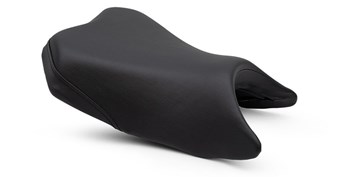 Seat cover features contrasting side material and stitching with Kawasaki logo
