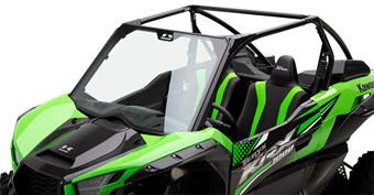 Peut être remorqué sur des remorques ouvertes lorsqu'il est utilisé en combinaison avec n'importe quel pare-brise complet (le verre de pare-brise rabattable doit être en position fermée) et l'ensemble de porte motorisée (99994-1772)