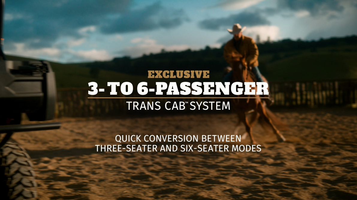 L’unique système Trans Cab de Kawasaki ajoute à la polyvalence du MULE PRO-FXT 1000 et offre la possibilité de maximiser la capacité de charge grâce à une caisse allongée en mode trois personnes ou de maximiser l’espace passager en mode six personnes. Le système permet à une personne de compléter la conversion en environ une minute.