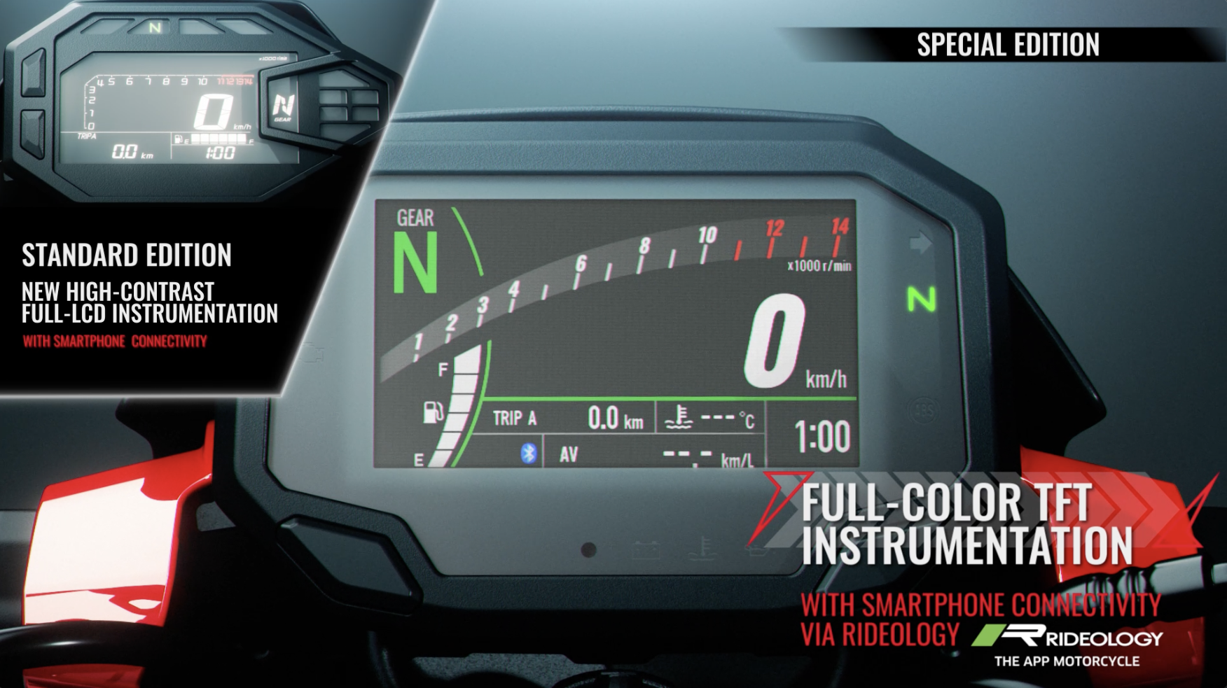 Un modèle Z500 édition spéciale offre des couleurs et des graphismes originaux ainsi que d'autres caractéristiques et accessoires exclusifs. En plus de l'instrumentation TFT, d'un capot inférieur et d'une prise USB-C, la Z500 SE est équipée d'un cache-compteur fumé, d'une housse de selle passager, de clignotants à DEL, de glissières de cadre, d'un tampon de réservoir, de genouillères et d'un écran de radiateur.